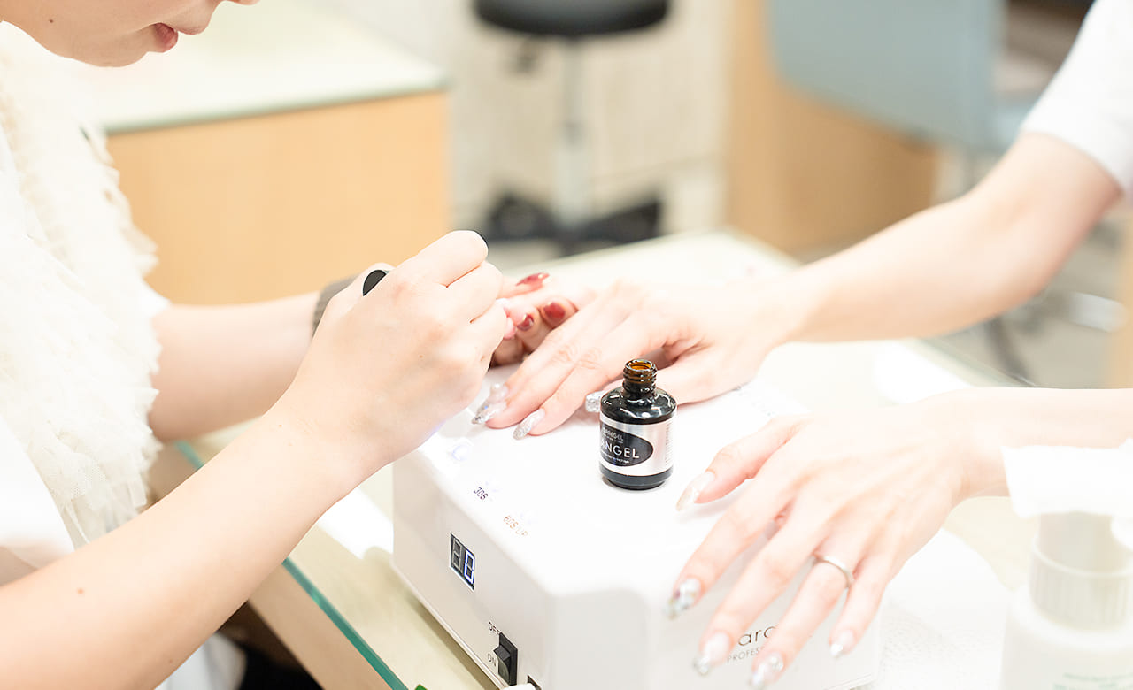 トレンドのマグネットネイルやニュアンスネイル、フレンチなどのデザインはもちろん、指先を健やかに保つケアにもこだわり、多くのお客様から支持をいただいています。ネイルスクール卒業後は、直営ネイルサロンで経験を積むことも可能です。