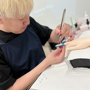 入学から1年半、ネイル3級・2級、ジェル初級~上級を取得。まだ男性が少ない業界だからこそ、繊細さや自分らしさを活かせるネイルの仕事にやりがいを感じています。